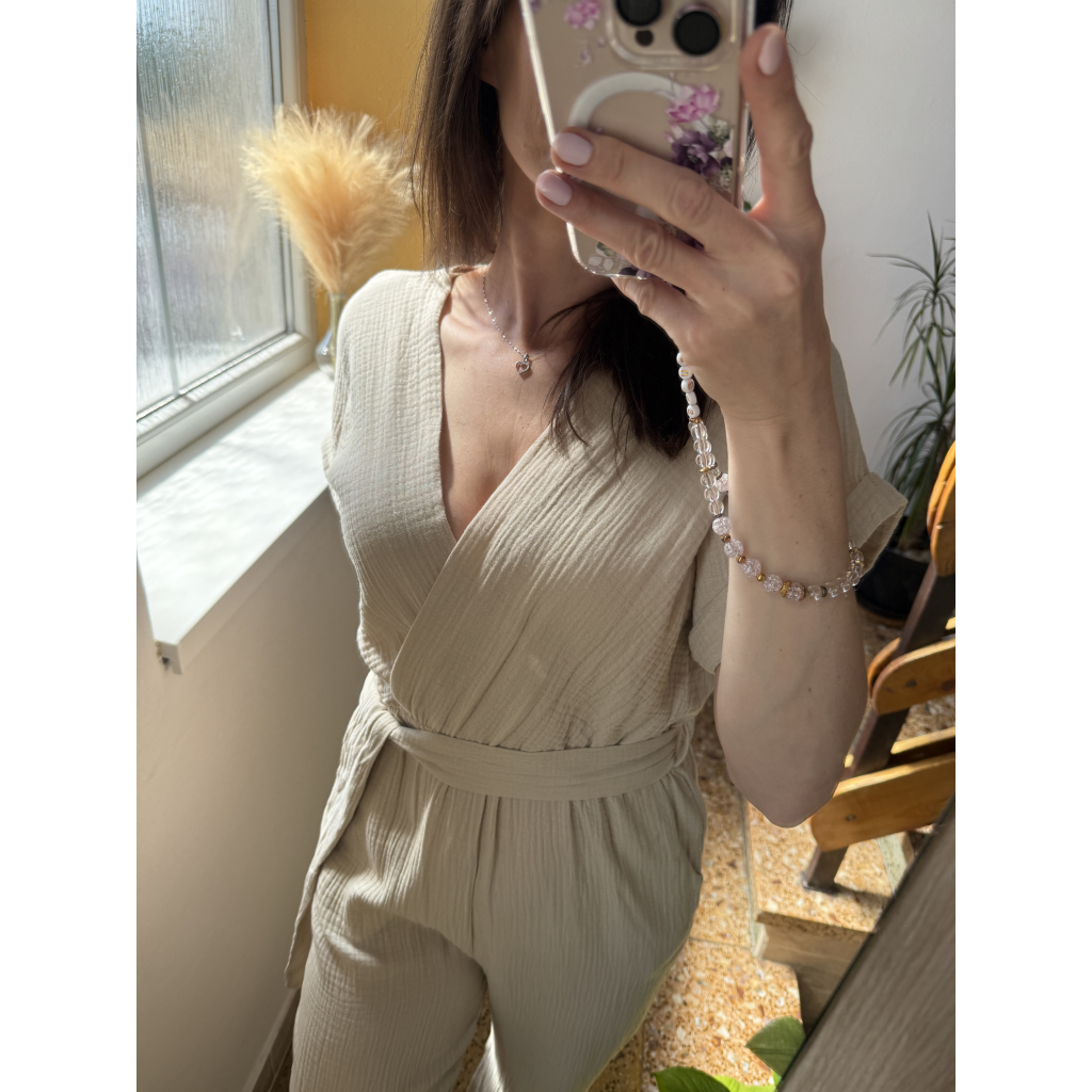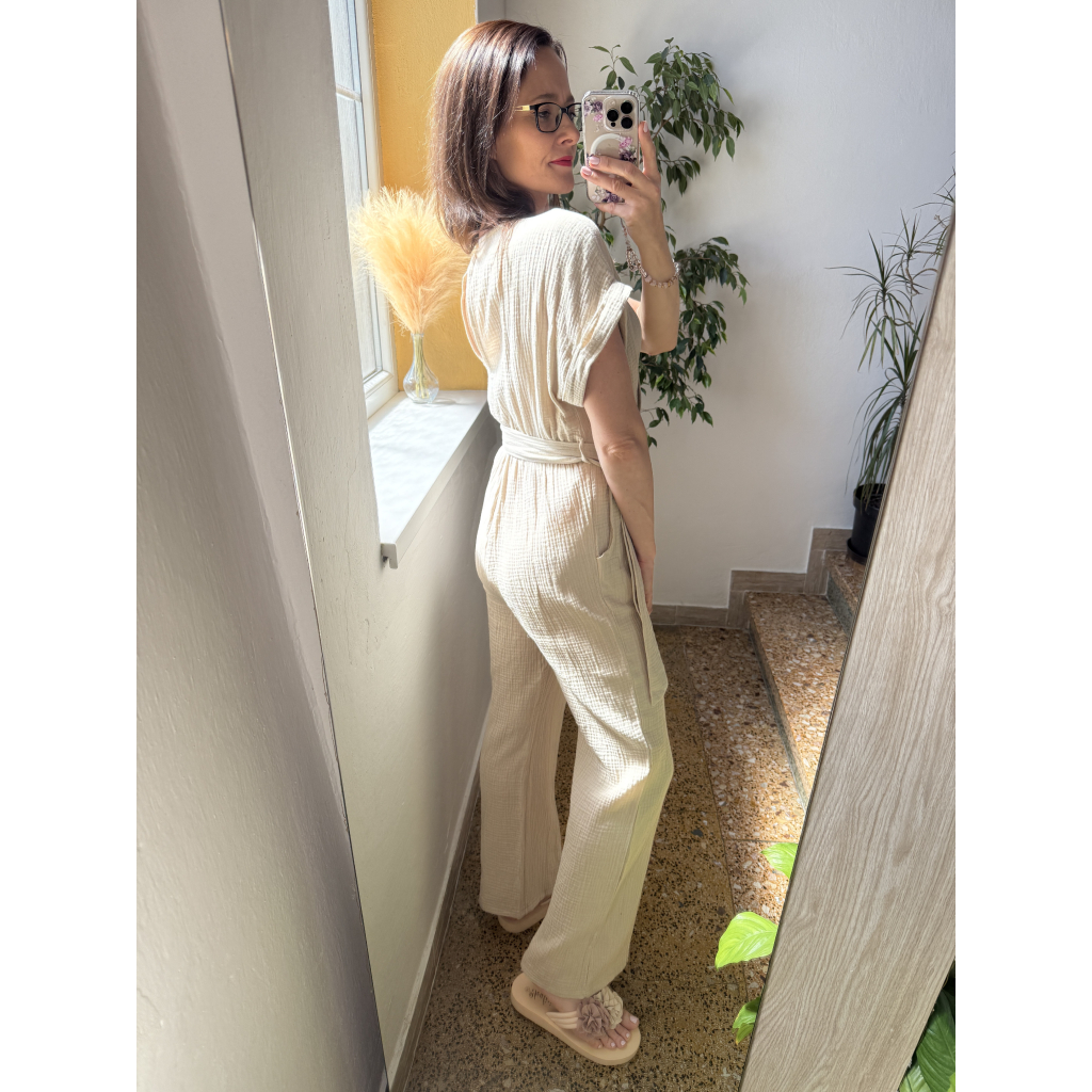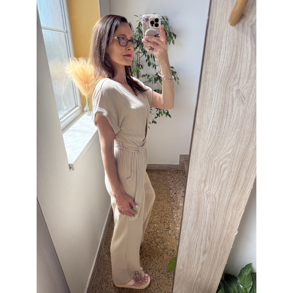 Béžový mušelínový overal Sienna – Jemnost, pohodlí a styl v jednom kousku