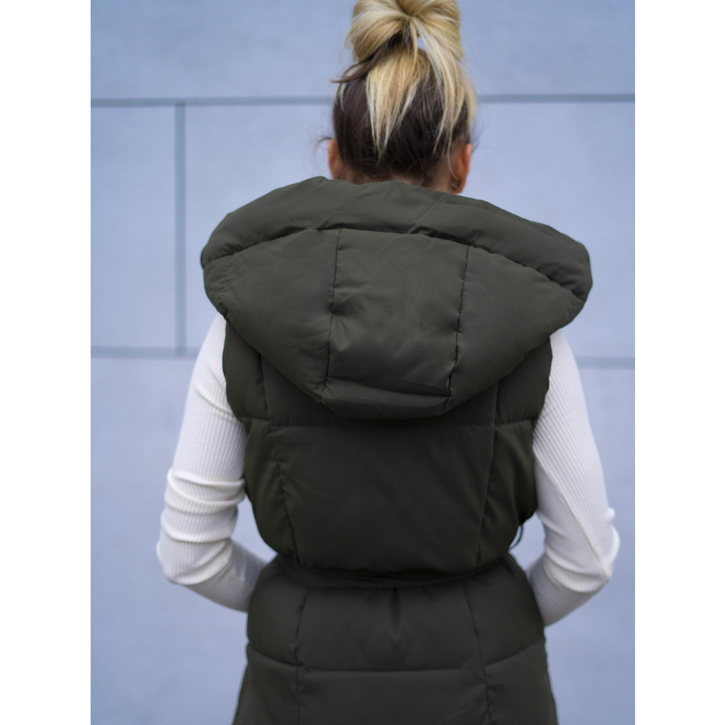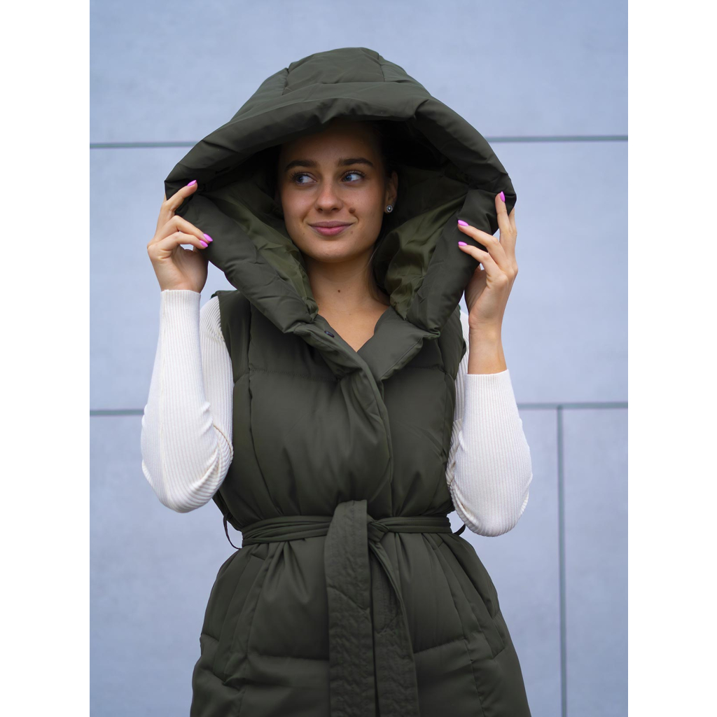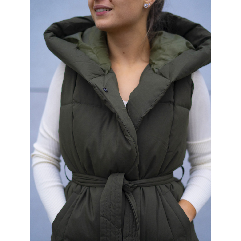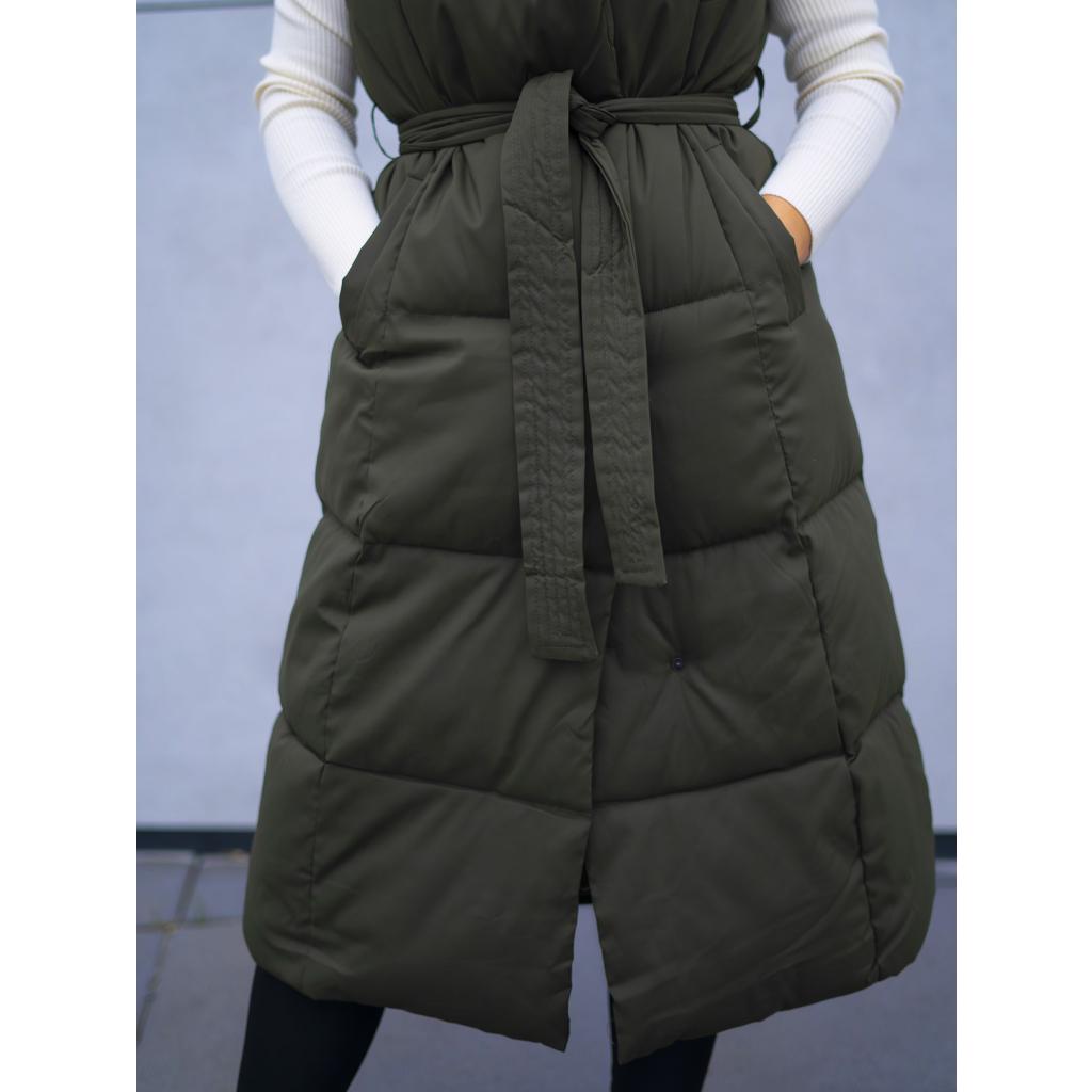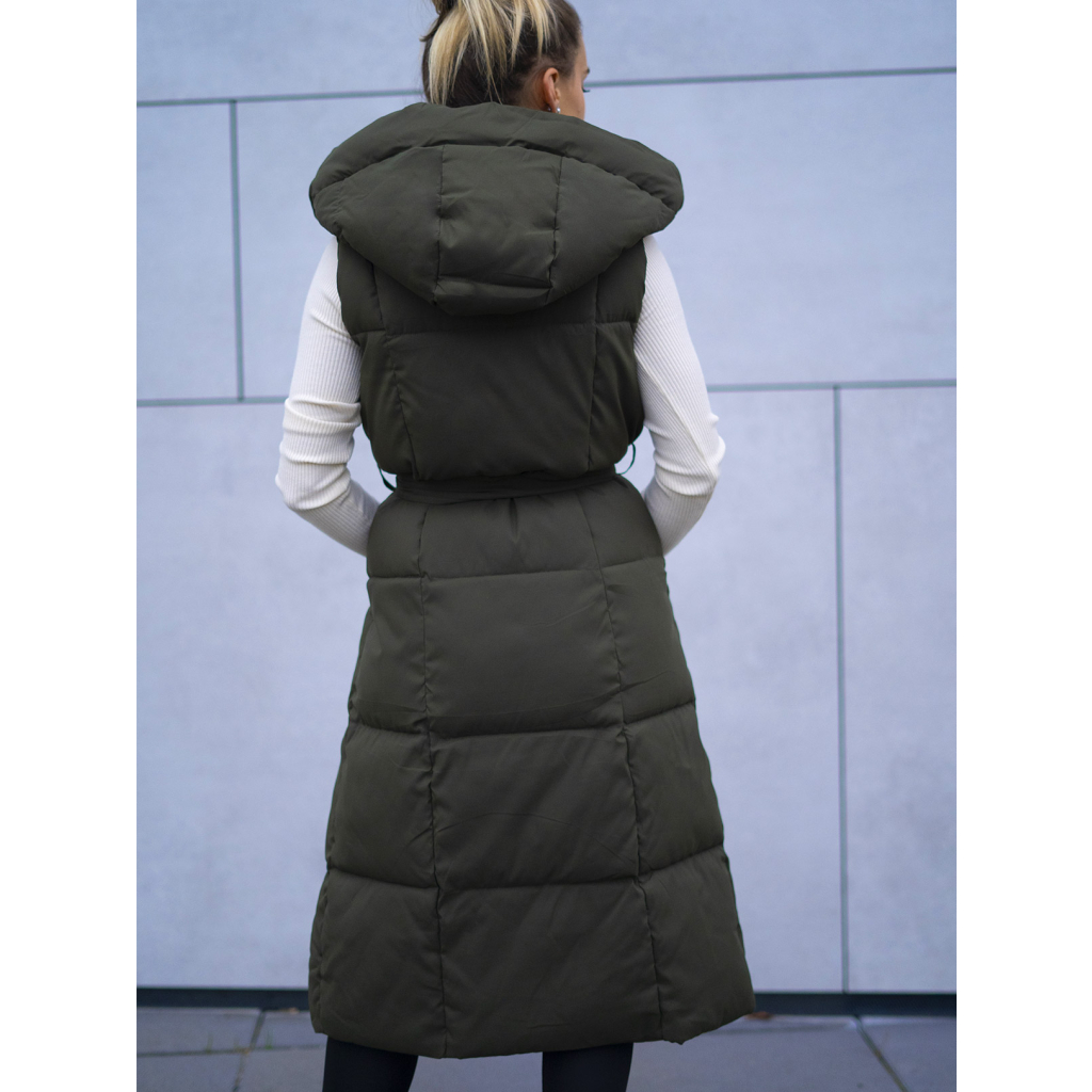 Dlouhá zelená zateplená vesta Vertti s opaskem