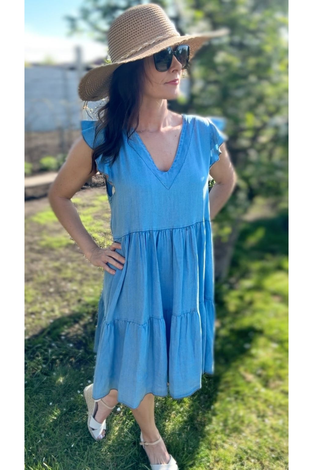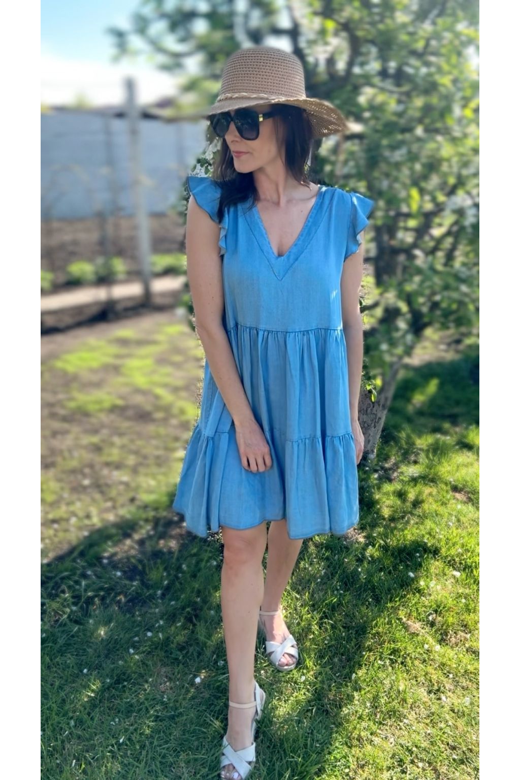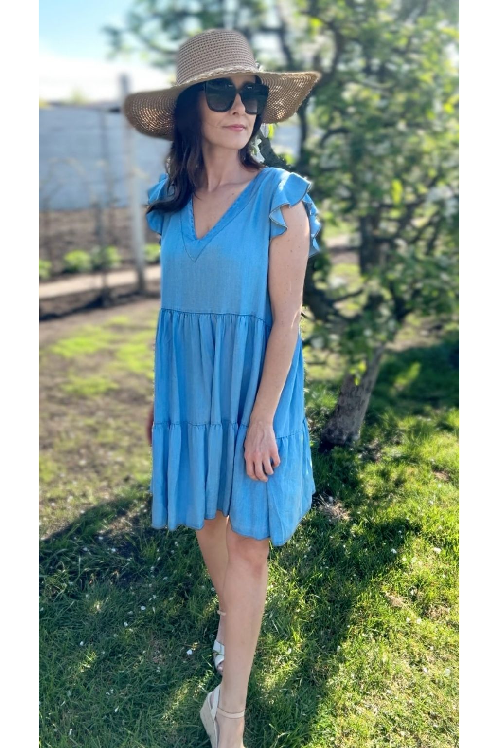 Šaty, které v létě nebudeš chtít sundat. Jsou ušité z lehké džínoviny, která dýchá. Díky volnému střihu s volány jsou neuvěřitelně pohodlné.