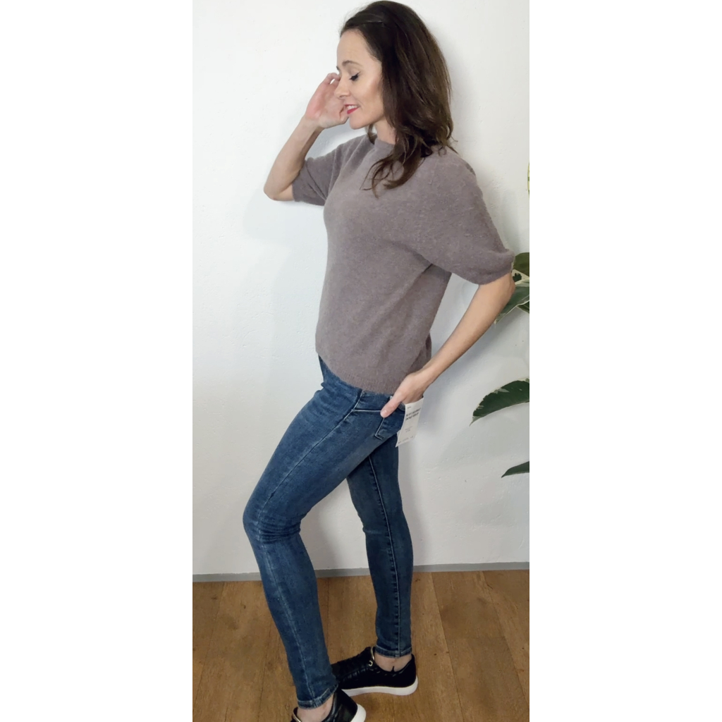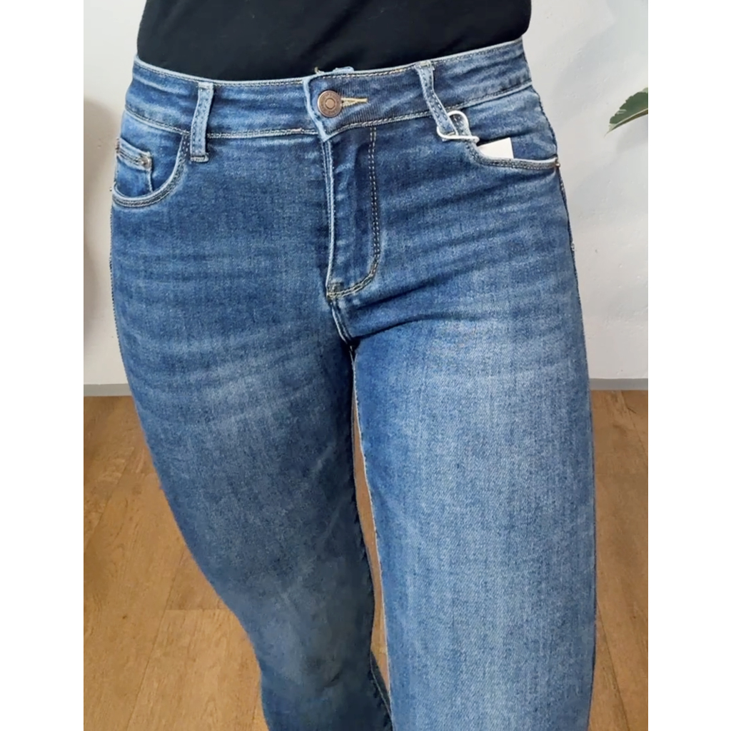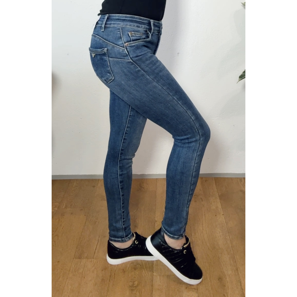 Mají vysoký pas, push-up střih a jemný vintage efekt, díky kterému vypadají stylově ke všemu. Krásný detail na zadní kapse dodává ženský nádech.