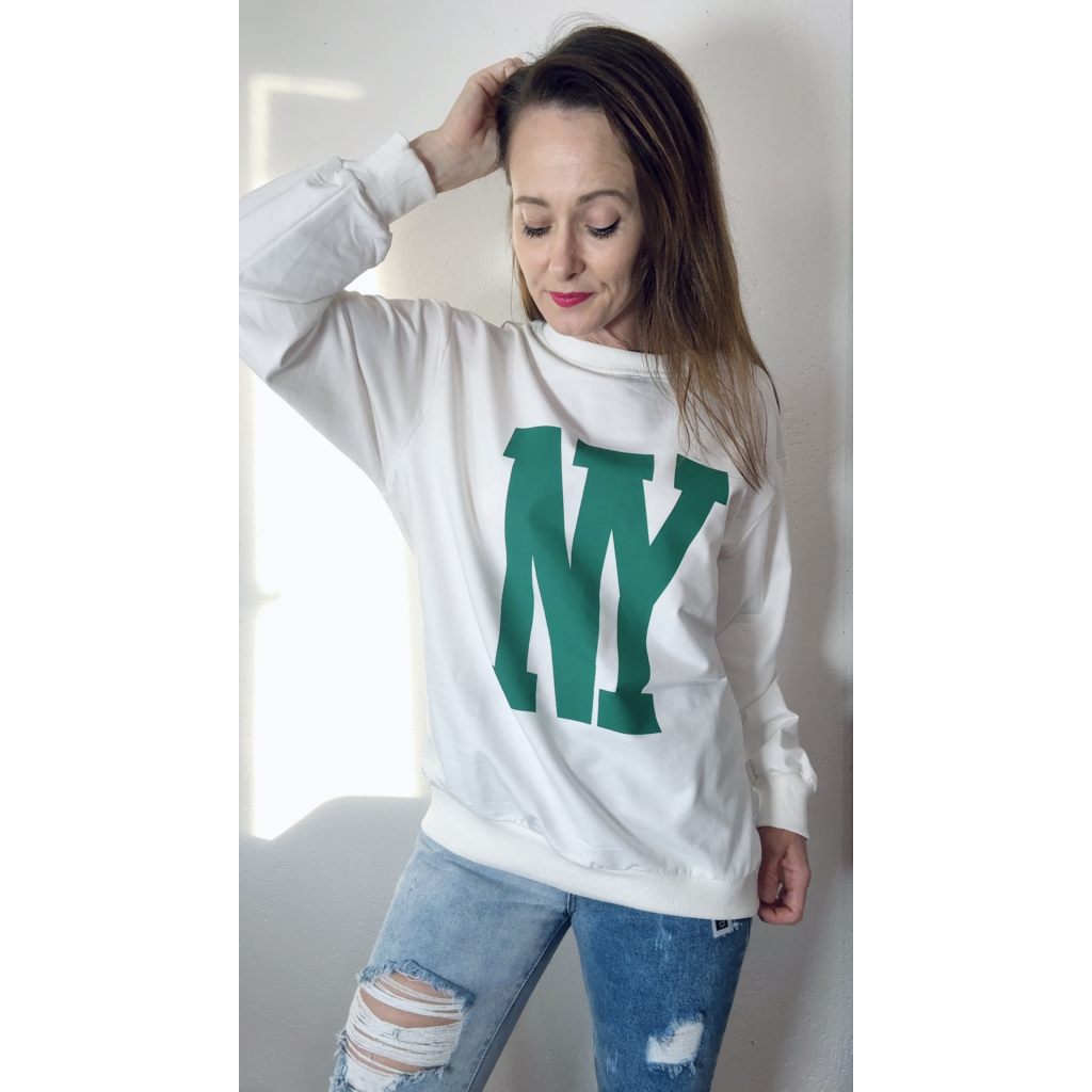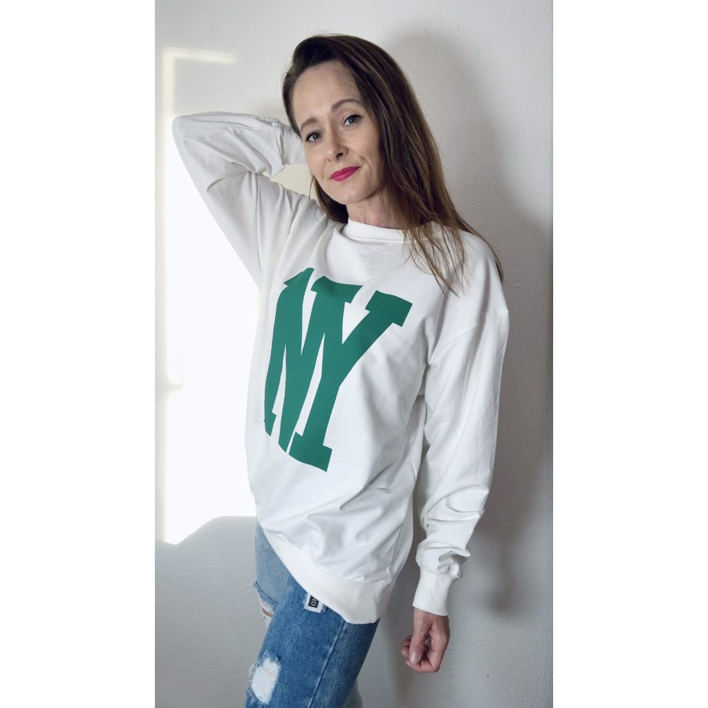 Lehká mikina s potiskem NY v bílé barvě - UNI velikost