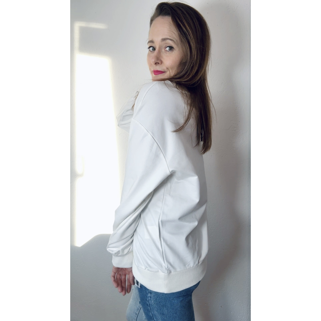 Rozzařte svůj den s mikinou v bílé barvě a potiskem NY.