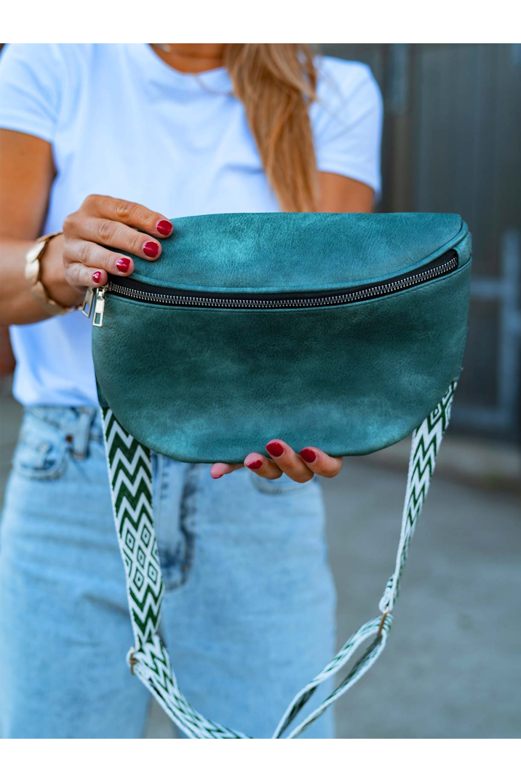 Modrozelená koženková ledvinka Buffy s bílozeleným nastavitelným popruhem