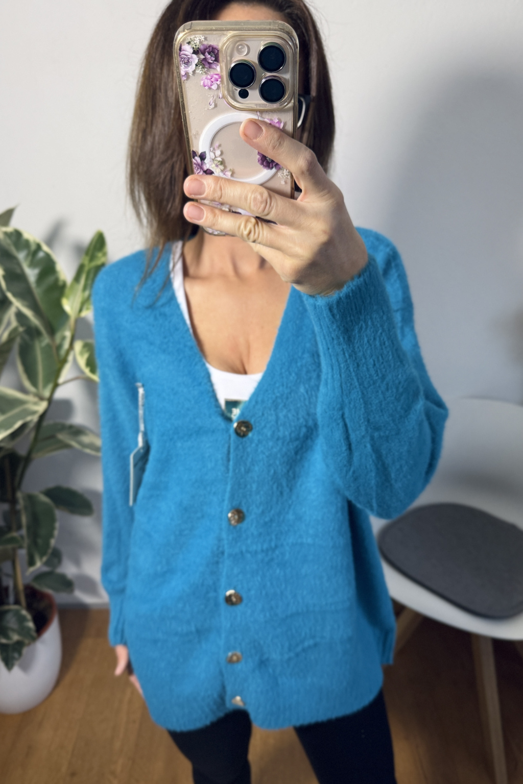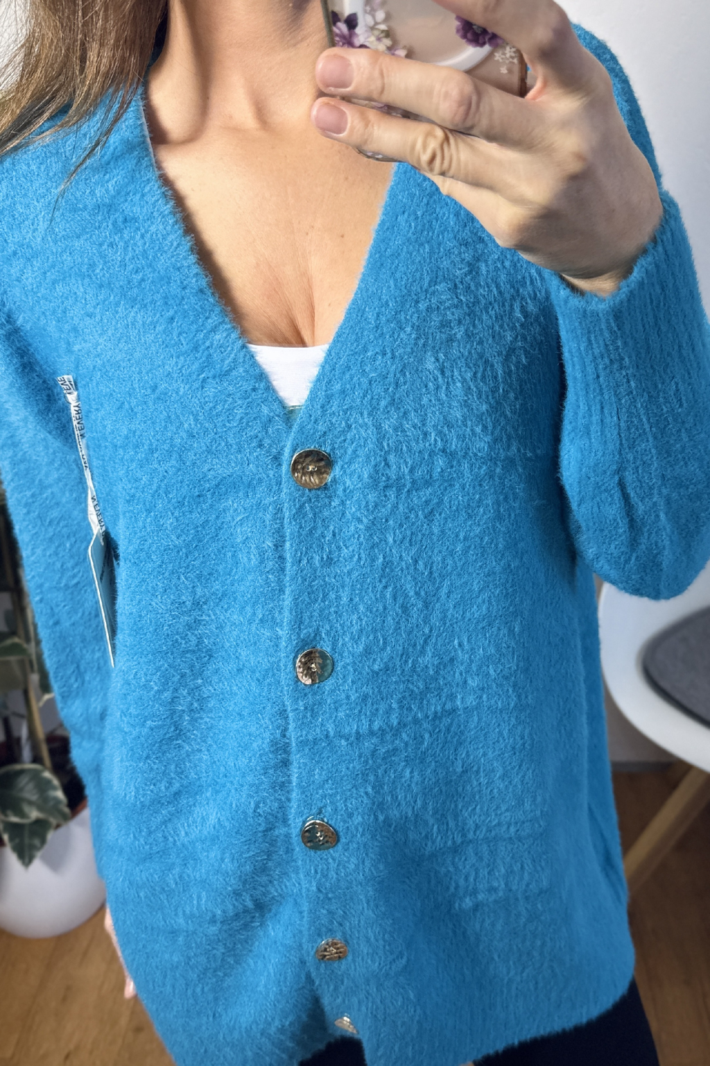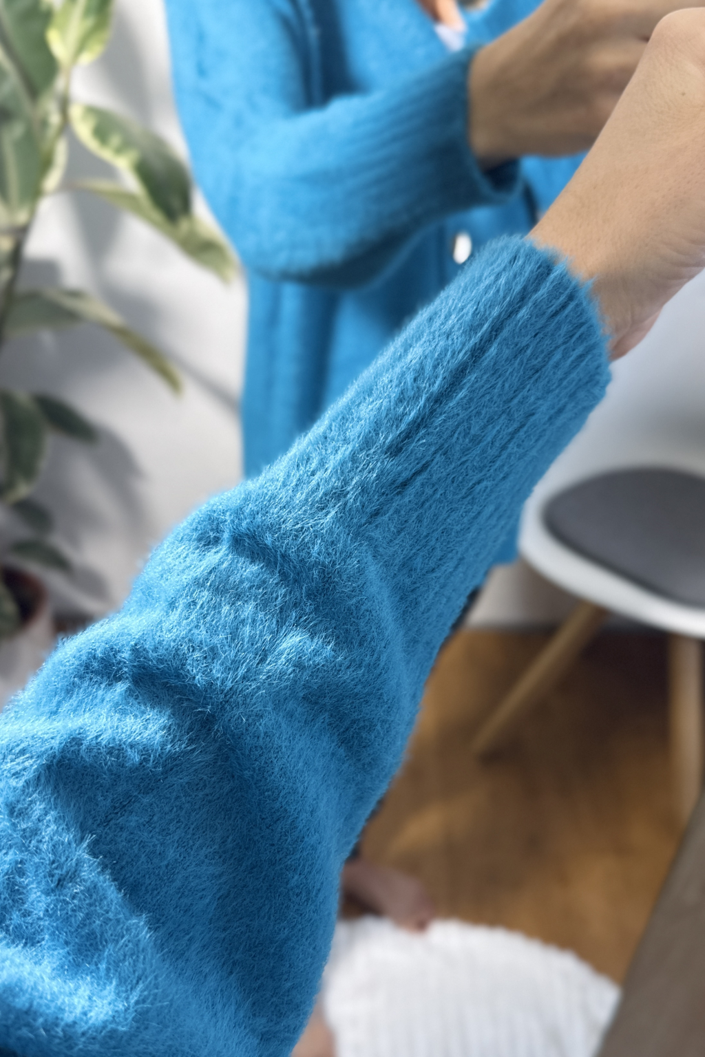 OVERSIZE SVETR NA ZAPÍNÁNÍ MODRÝ UNI