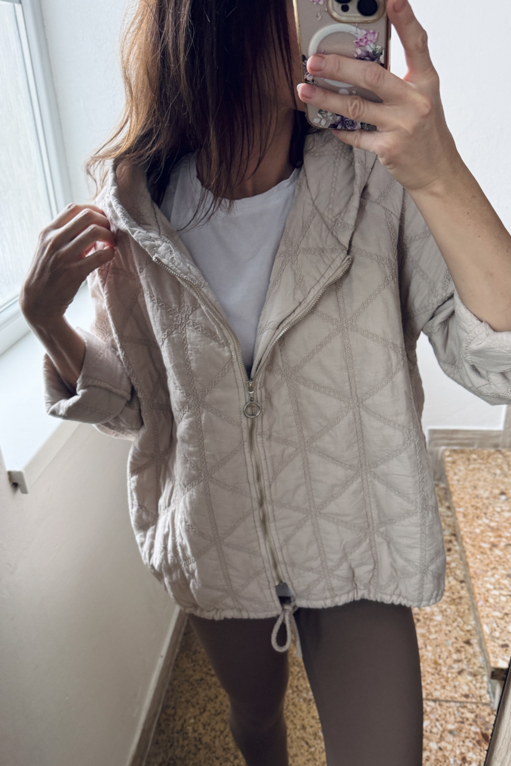 Prošívaná bunda s kapucí ECLAT béžová
