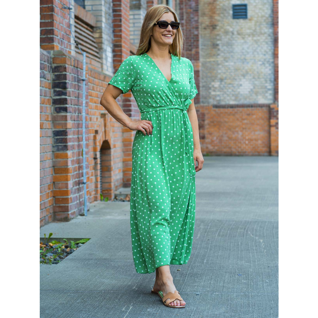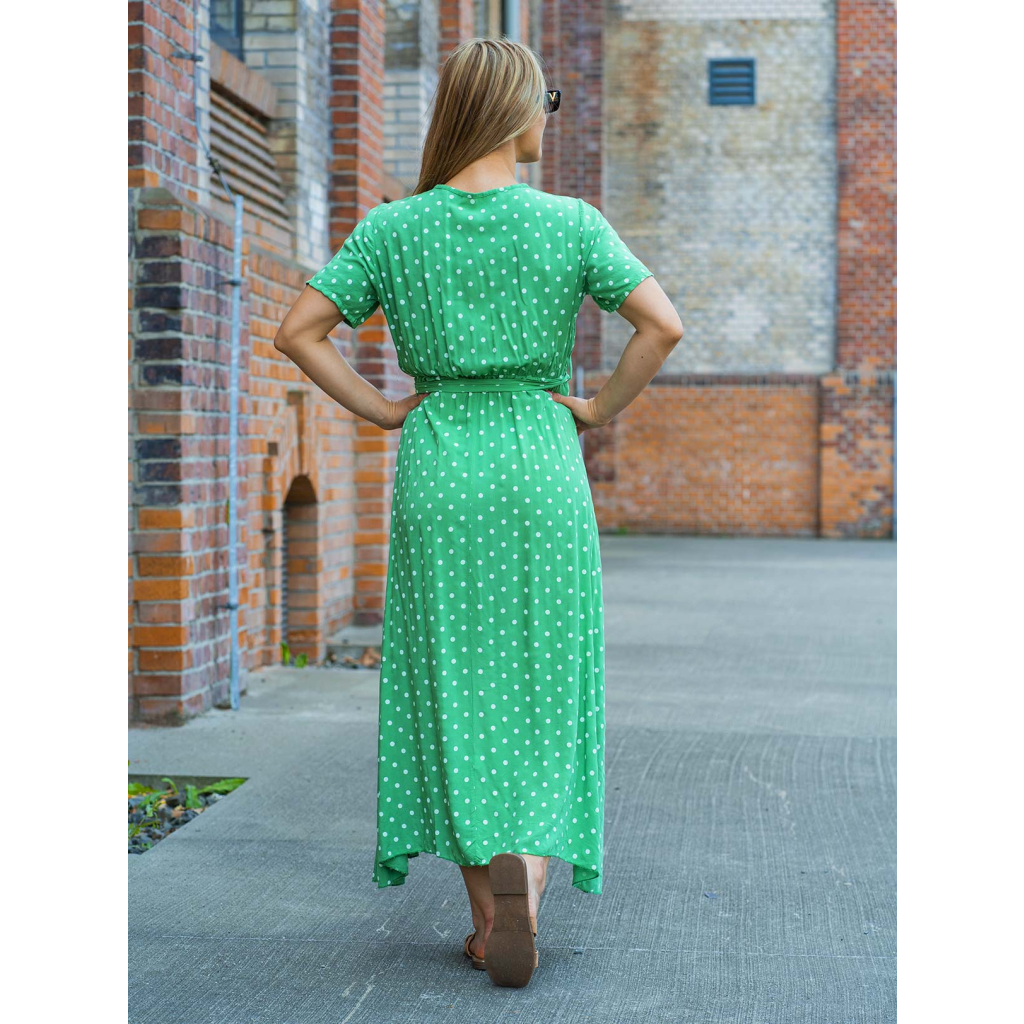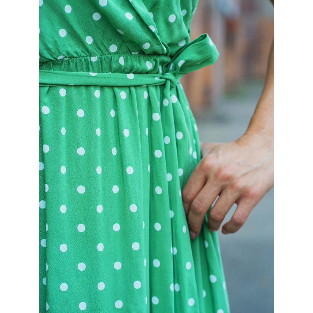 Šaty Niobé - zelené s puntíky