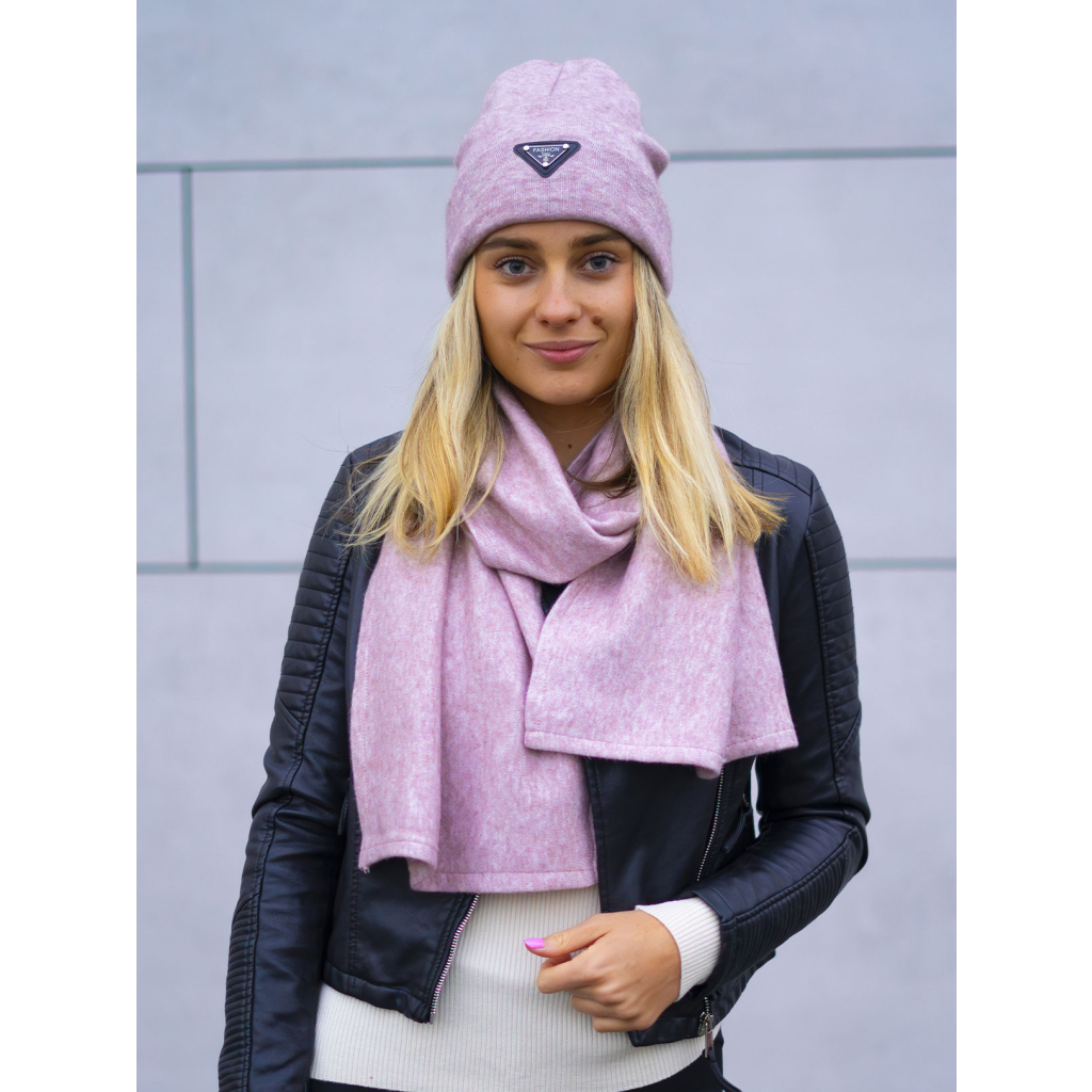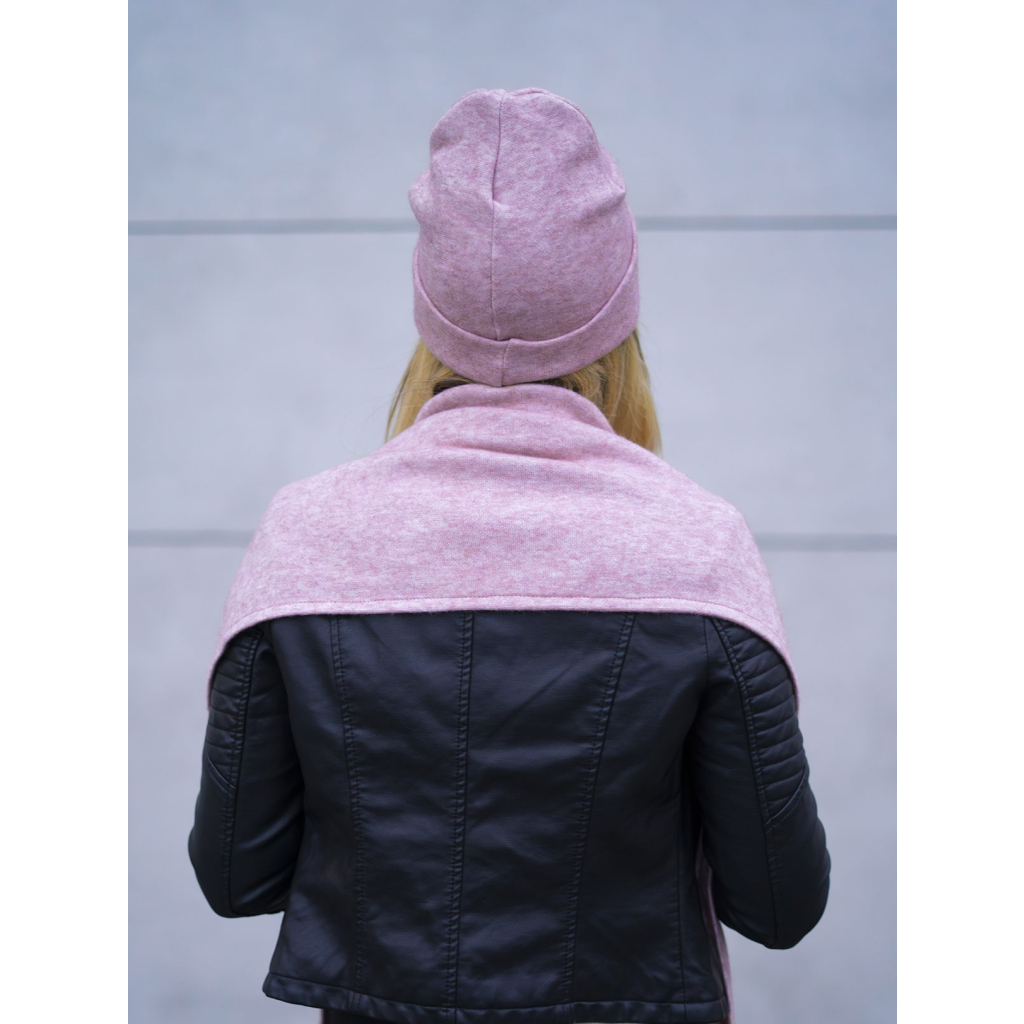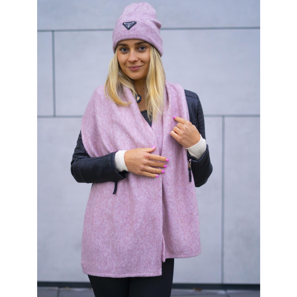 Světle růžová dvoudílná zimní souprava Delmar se šálou z angorské vlny