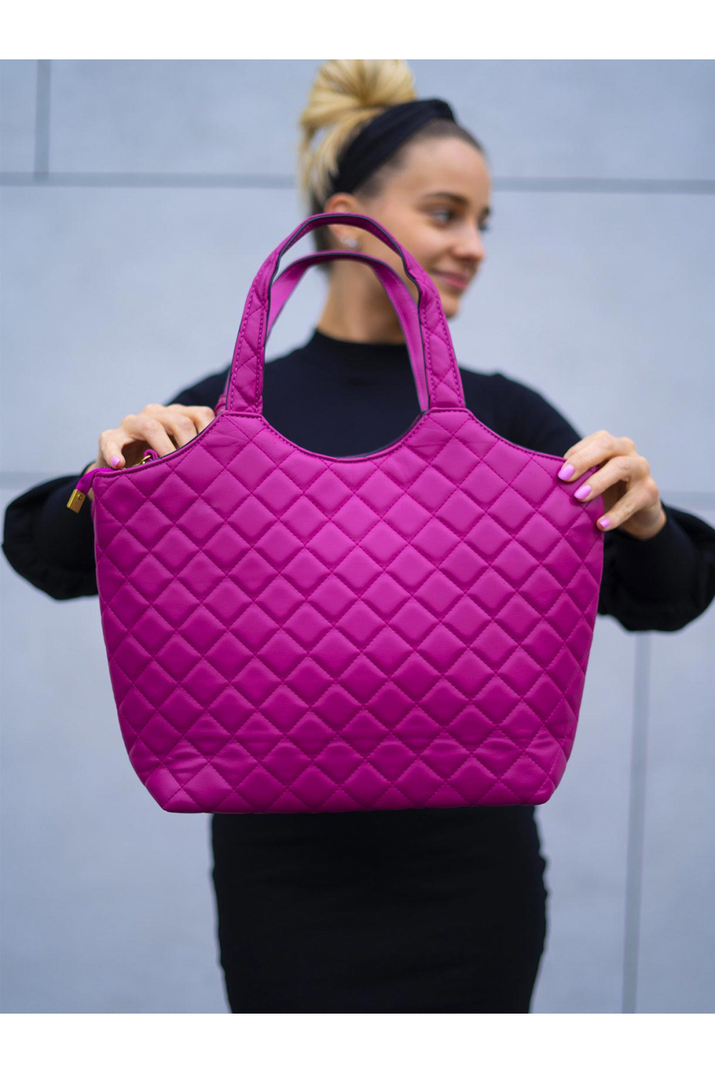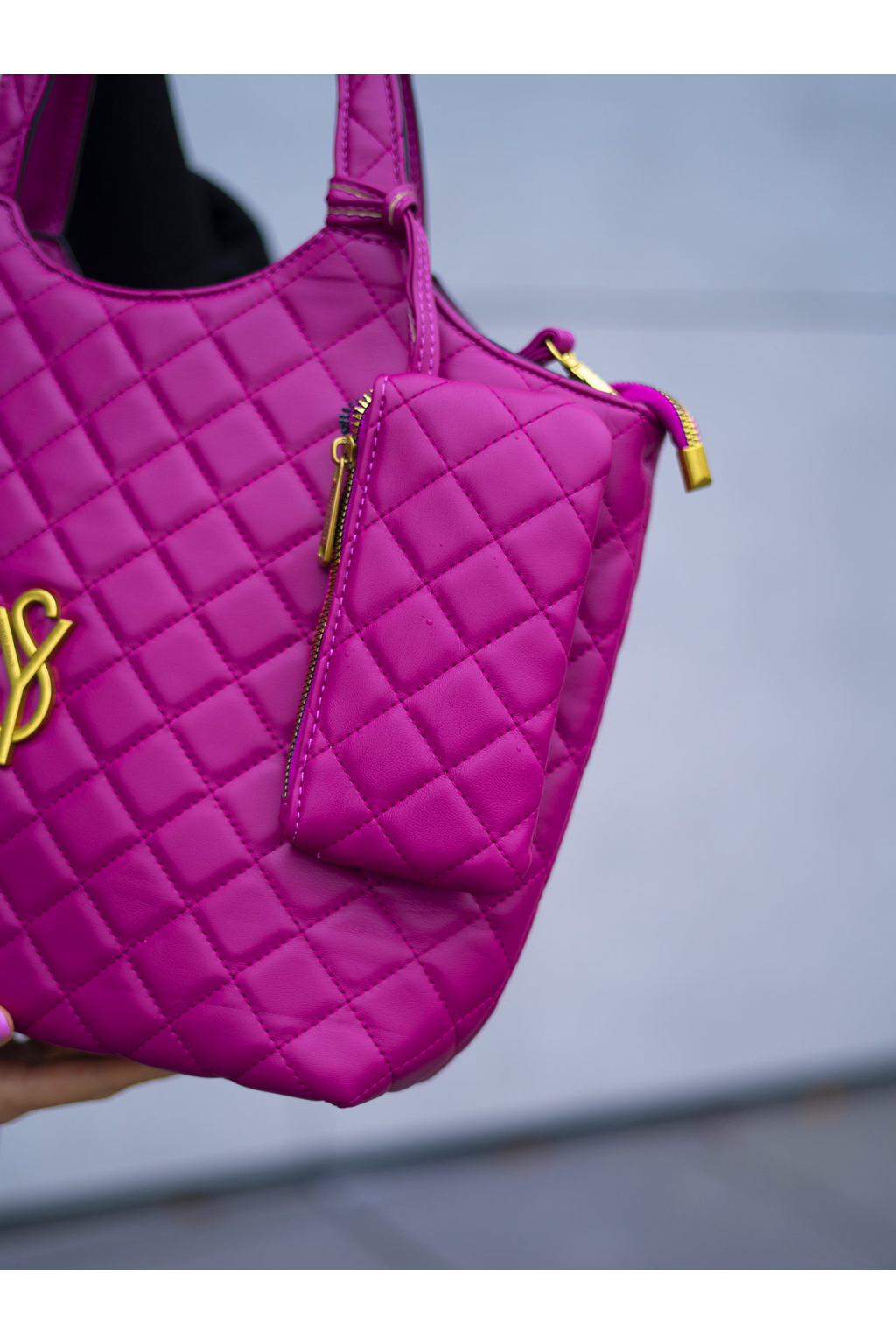 Sytě růžová prošívaná kabelka Niila 2v1 přes rameno s páskem a kapsičkou