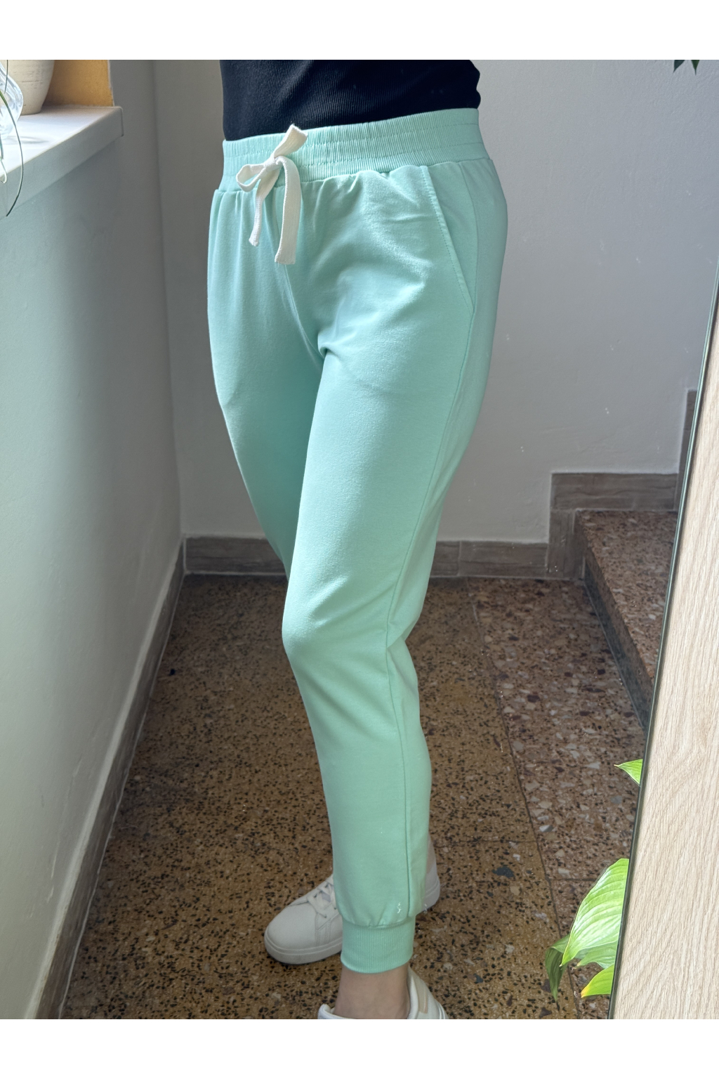 Volnější trendy tepláky sahají až ke kotníkům a disponují dvěmi bočními kapsami.