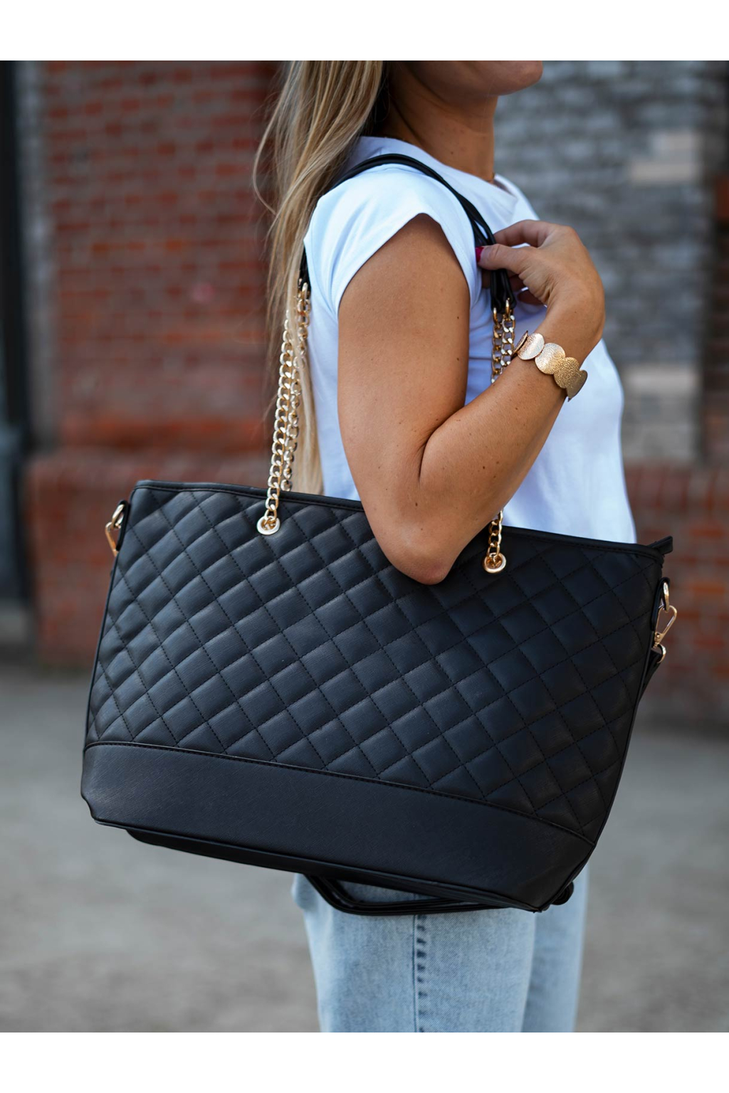 Velká černá elegantní kabelka Merlin se zlatým řetízkem
